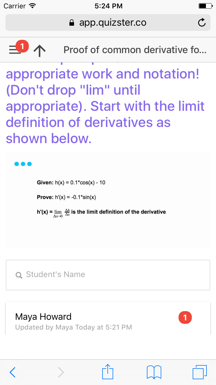 You will receive a notification whenever there is new work from the student